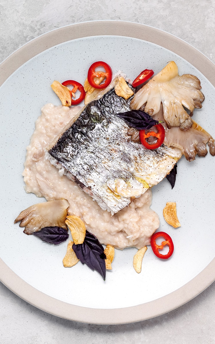 There isnt a better recipe for those who enjoy the flavors of the sea. Sea Bass Oat Porridge with Garlic Chips is a unique and delicious dish that combines the comforting texture of oatmeal with the fresh flavor of pan-seared sea bass. The oat porridge is made with steel-cut oats and seasoned with herbs and spices, creating a warm and filling base for the fish.