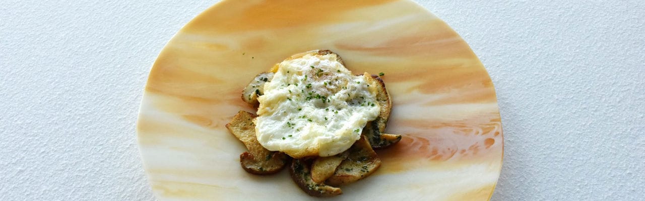 Agora é só estrelar o ovo e servir colocando-o por cima dos cogumelos, com um pouco de sal e pimenta.