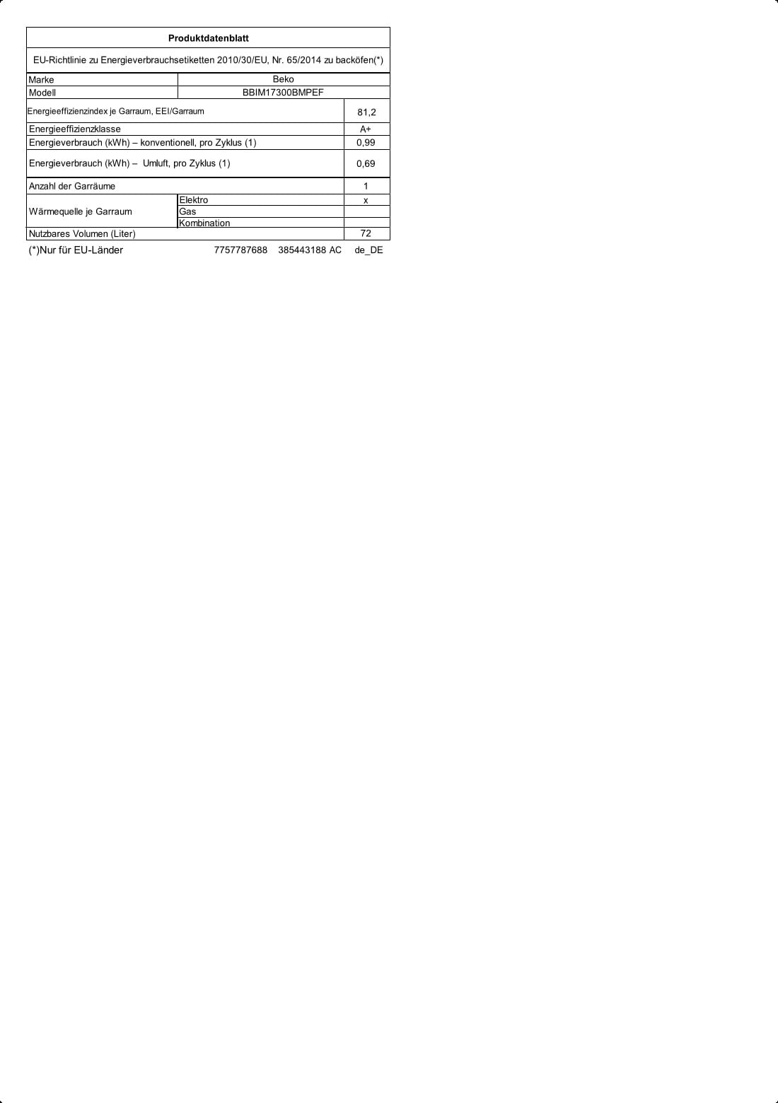 BBIM17300BMPEF: 60 cm 72 L 3D Kochen Einbaubackrohr
