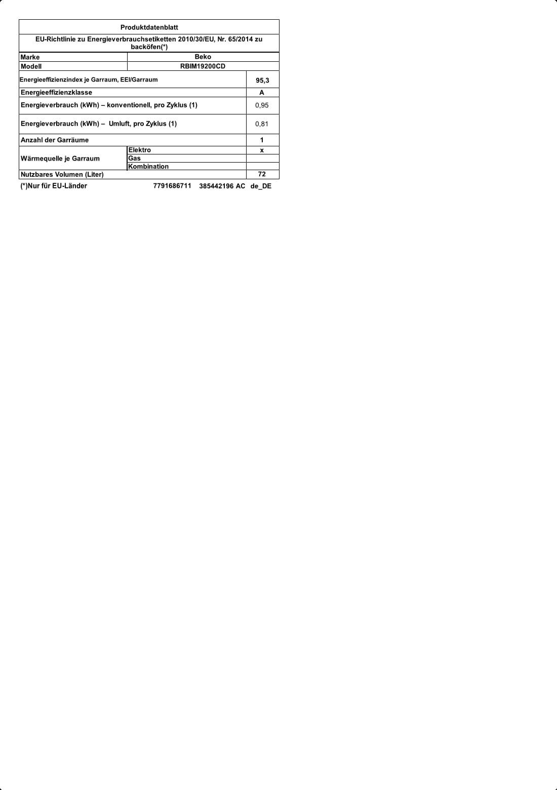RBIM19200CD: 60 cm 72 L 3D Kochen Einbaubackrohr