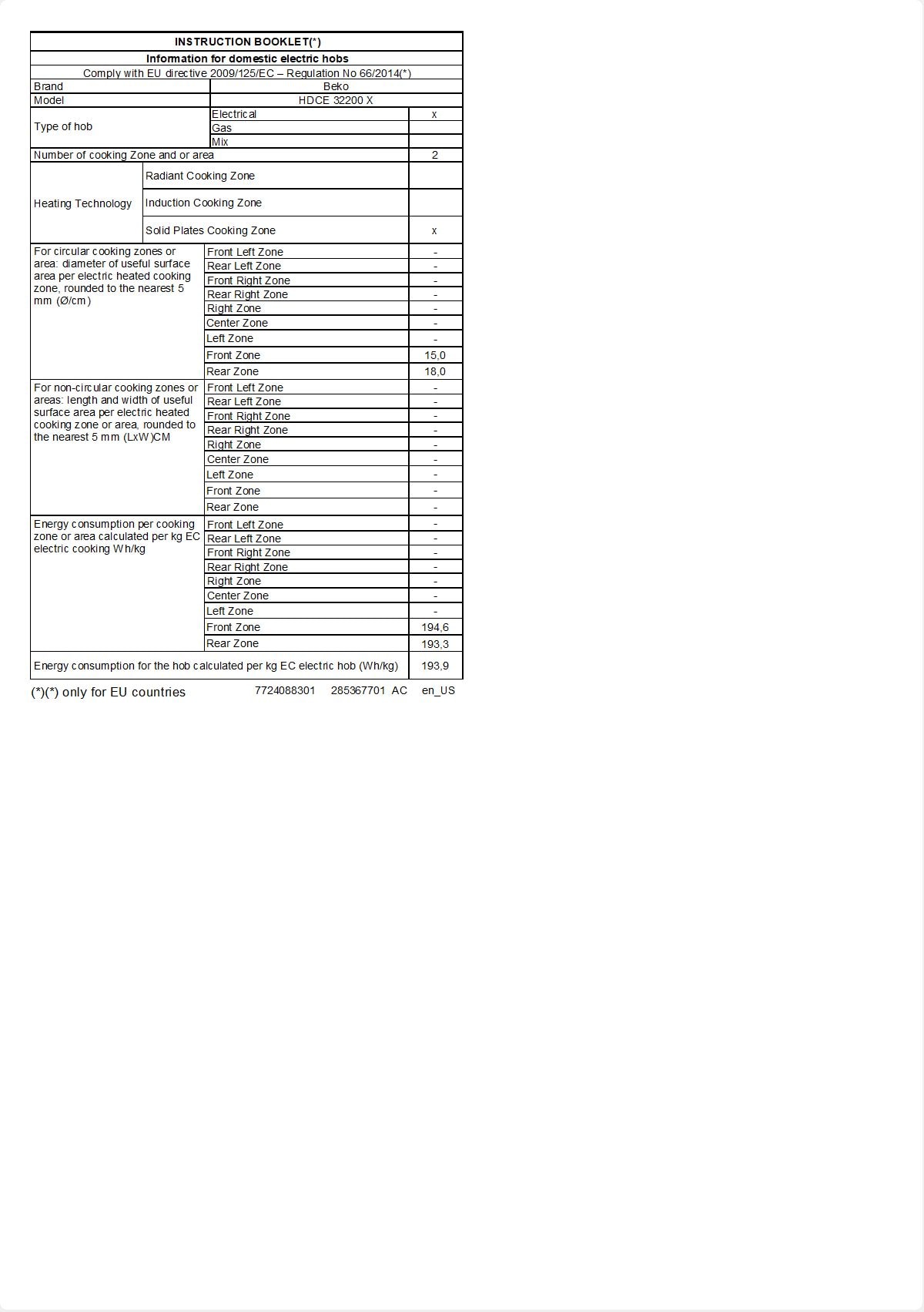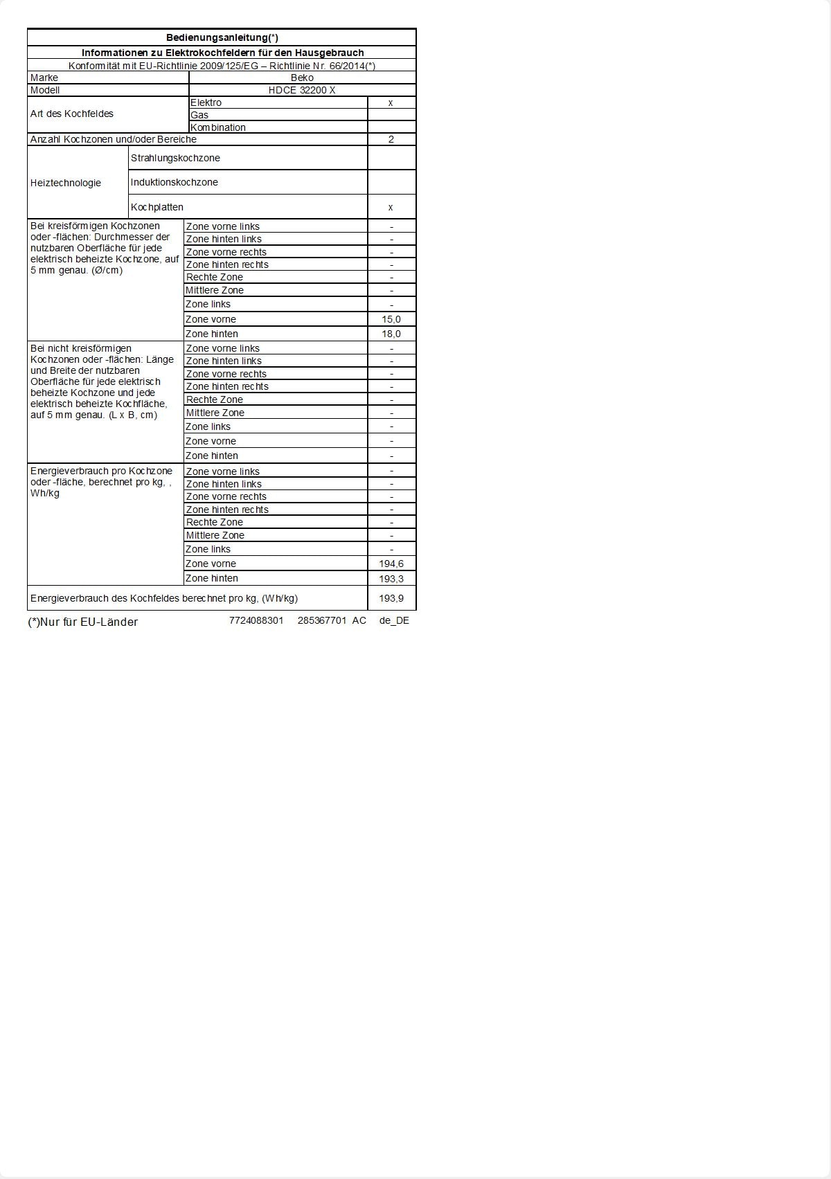 HDCE 32200 X: 30 cm Elektrisch Einbaukochfeld ( 2 Massekochfelder )