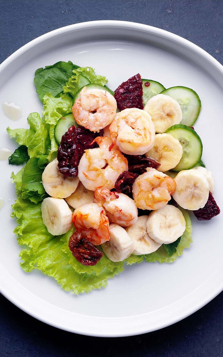 If you say, "Banana in the salad"; and havent tried this recipe before, youre missing something delicious. If you're planning a romantic night in, Green Banana Salad with Prawns is a great dish to consider. The contrasting sweet and sour flavors of the salad blend perfectly with the succulent and juicy prawns, creating a truly tantalizing and mouthwatering meal. Best of all, the dish is incredibly simple to prepare, so you wont have to spend too much time in the kitchen and can focus on spending quality time with your date. Whether youre trying to impress your significant other or just want to enjoy a delicious and nutritious meal, Green Banana Salad with Prawns is an excellent option to consider.