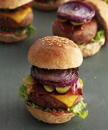 11. Add cheese if desired. Add toppings to top/bottom bun as desired. Close burgers and serve immediately.