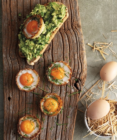 8. Lightly tap the eggs on a flat surface and drop the eggs into the hash brown cups. Sprinkle lightly with salt and pepper.