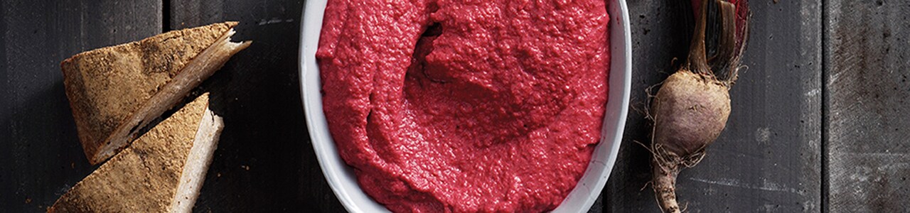 4. Peel the beetroot and coarsely chop. Put in a food processor.