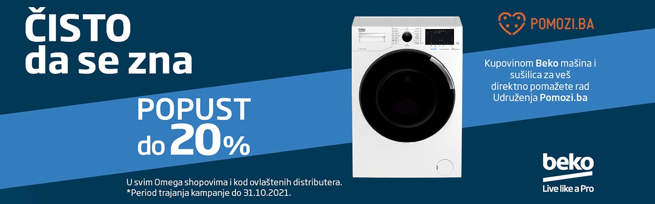 Svakom kupovinom Beko mašine za pranje, mašine za sušenje veša ili kombinovane mašine za pranje i sušenje veša u periodu trajanja akcije, takođe direktno pomažete rad humanitarnog udruženja Pomozi.ba