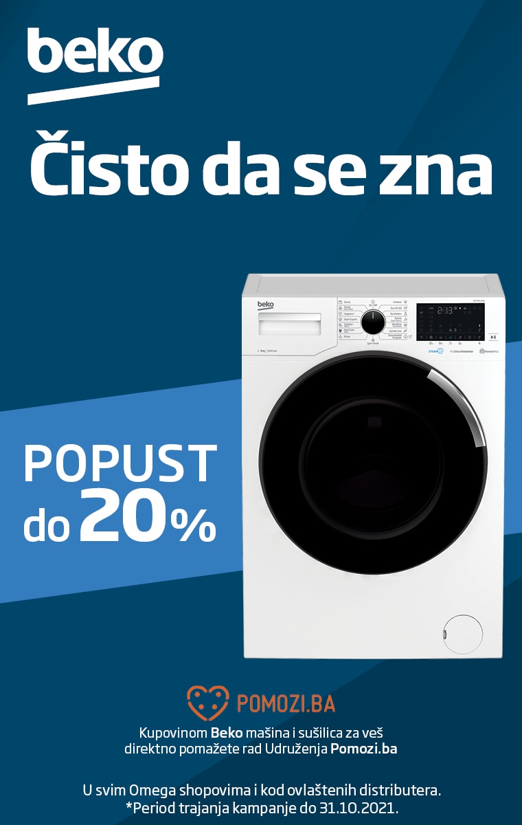 Iskoristite posebnu ponudu na sve Beko mašine za pranje, mašine za sušenje veša ili kombinovane mašine za pranje i sušenje veša - popust do 20% u svim Omega shopovima i kod ovlaštenih distributera.