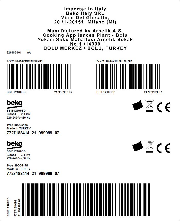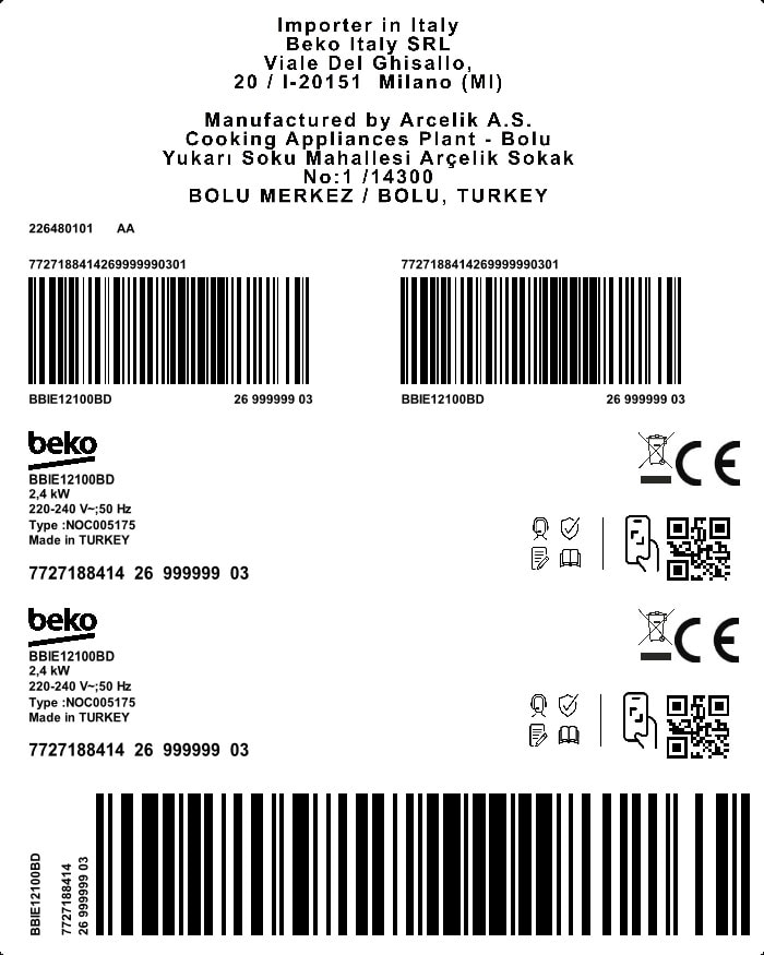 BBIE12100BD: Ugradbena rerna (60 cm 66 L)