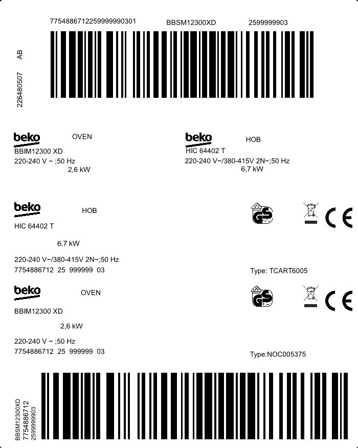 BBSM12300XD: Ugradni set (Multifunkcionalna Rerna / Staklokeramika Grijna ploča)