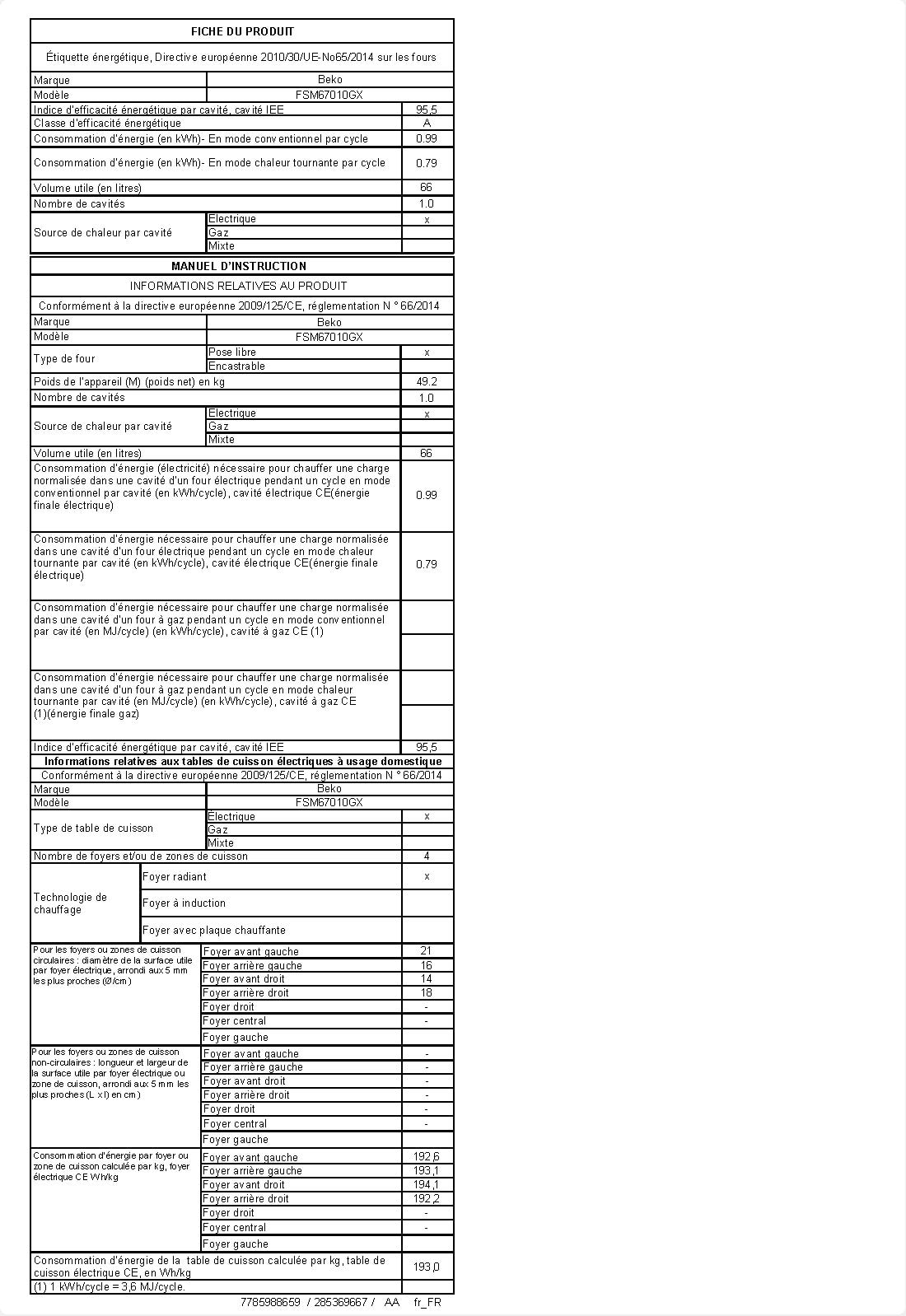 FSM67010GX: 60 cm Multifonctionnel Cuisinière pose libre
