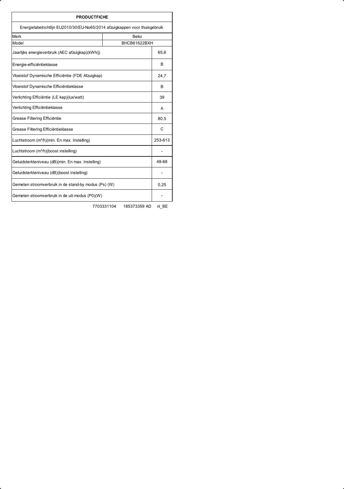 BHCB61622BXH: 60 cm Muur gemonteerd Dampkap