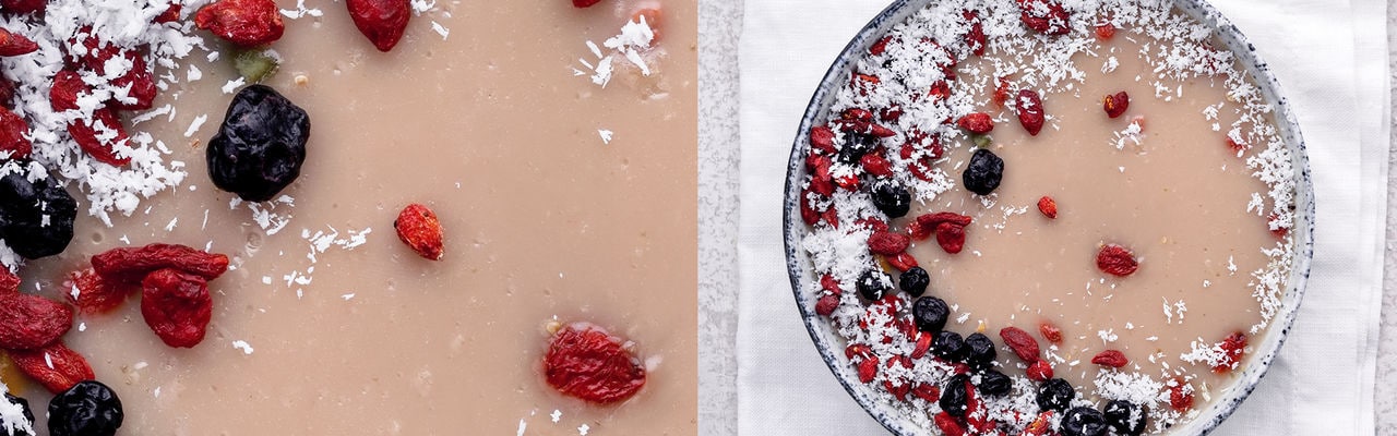 5. Serve with drizzle honey, sprinkle goji berries, blueberries and coconut. Enjoy!