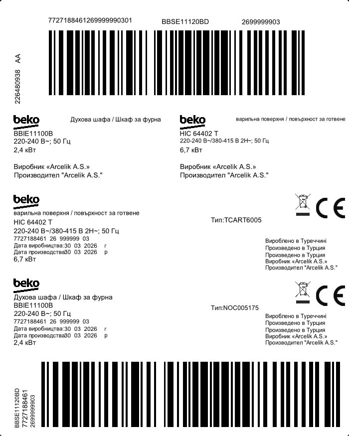 BBSE11120BD: Комплект за вграждане (С помощта на вентилатор Oven / Стъклокерамичен Hob)