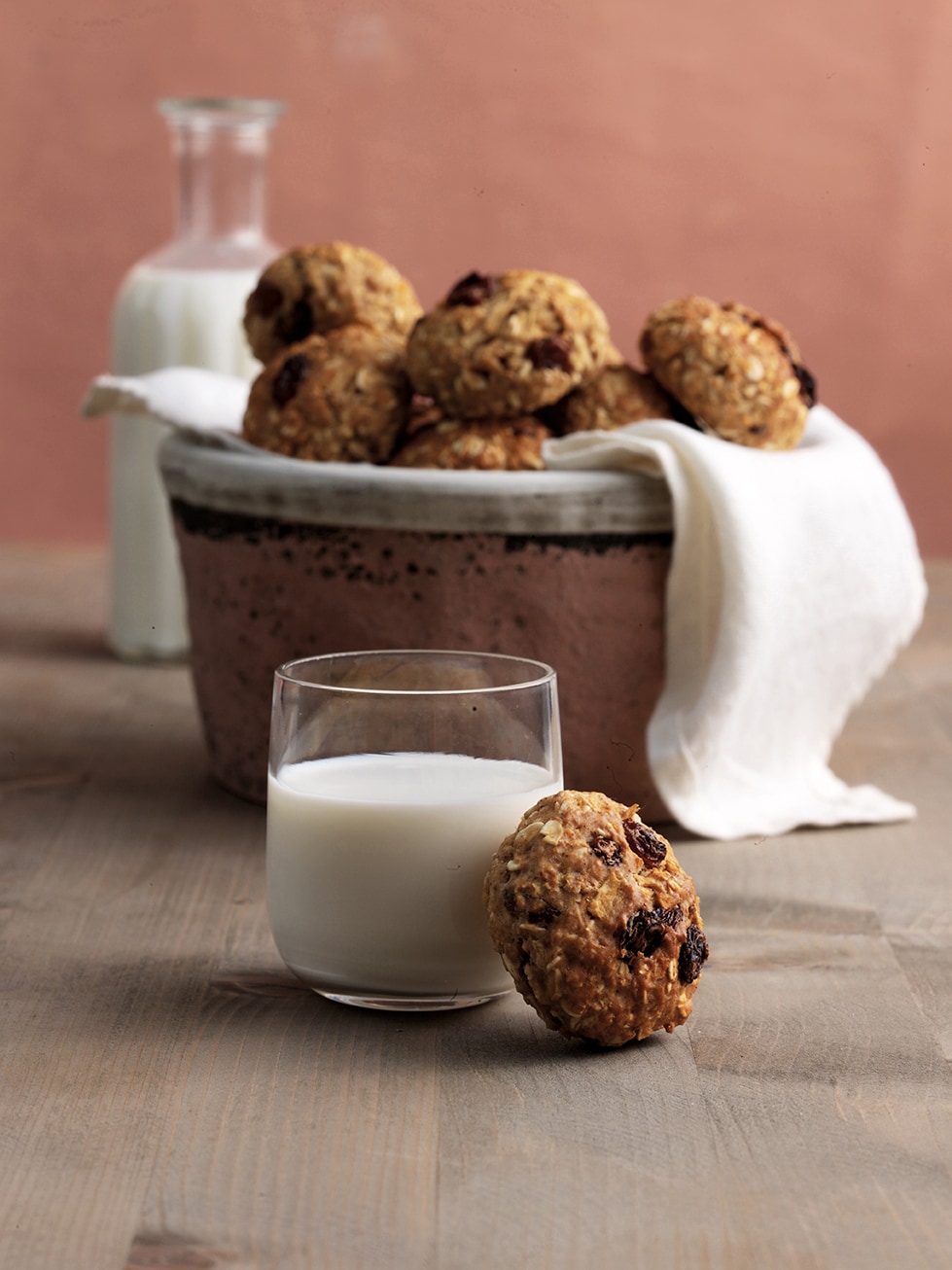 3. Añadir aceite, miel, huevo, vainilla, pasas, manzana y leche, agregar suficiente leche para humedecer la harina y la avena y hacer una pasta que se quede pegada.