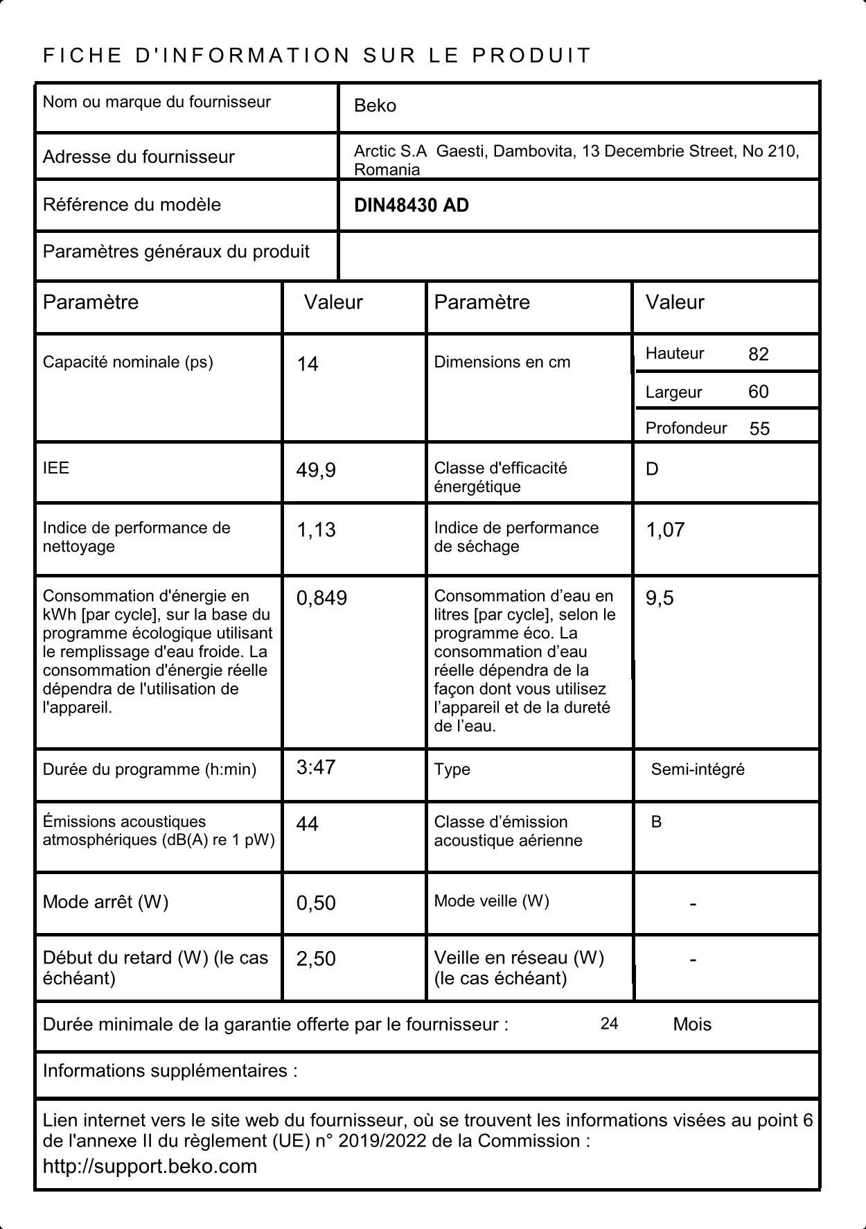 DIN48430 AD: 14 Plaats instellingen Volledig geïntegreerd volledige grootte Afwasmachine
