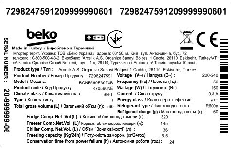 RCNE560E30ZXB: Kombinovaná lednice (Mraznička dole, 70 cm)