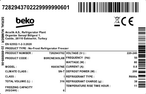 B5RCNE365LXB: Lednice s mrazákem (s mrazákem dole, 59.5 cm)