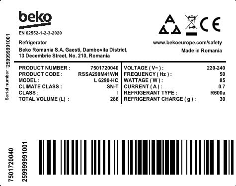 RSSA290M41WN: Lednice (lednice, 286 l)