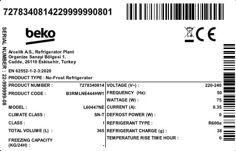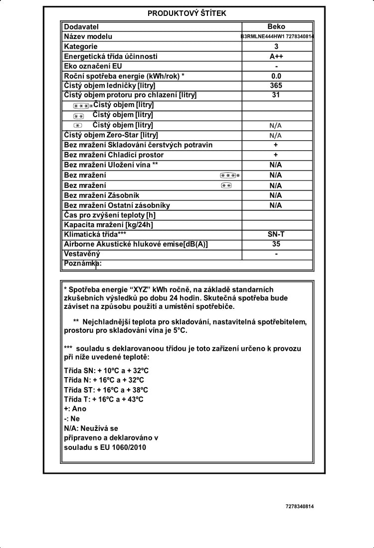 B3RMLNE444HW1: Lednice (lednice, 365 l)