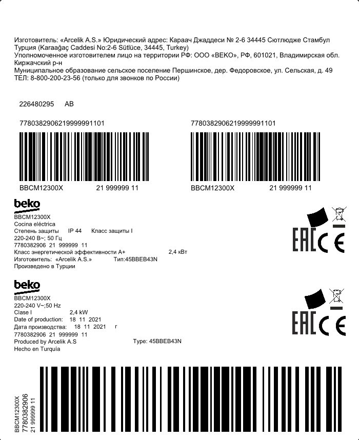 BBCM12300X: Vestavná trouba (45 cm kompaktní, 48 l)