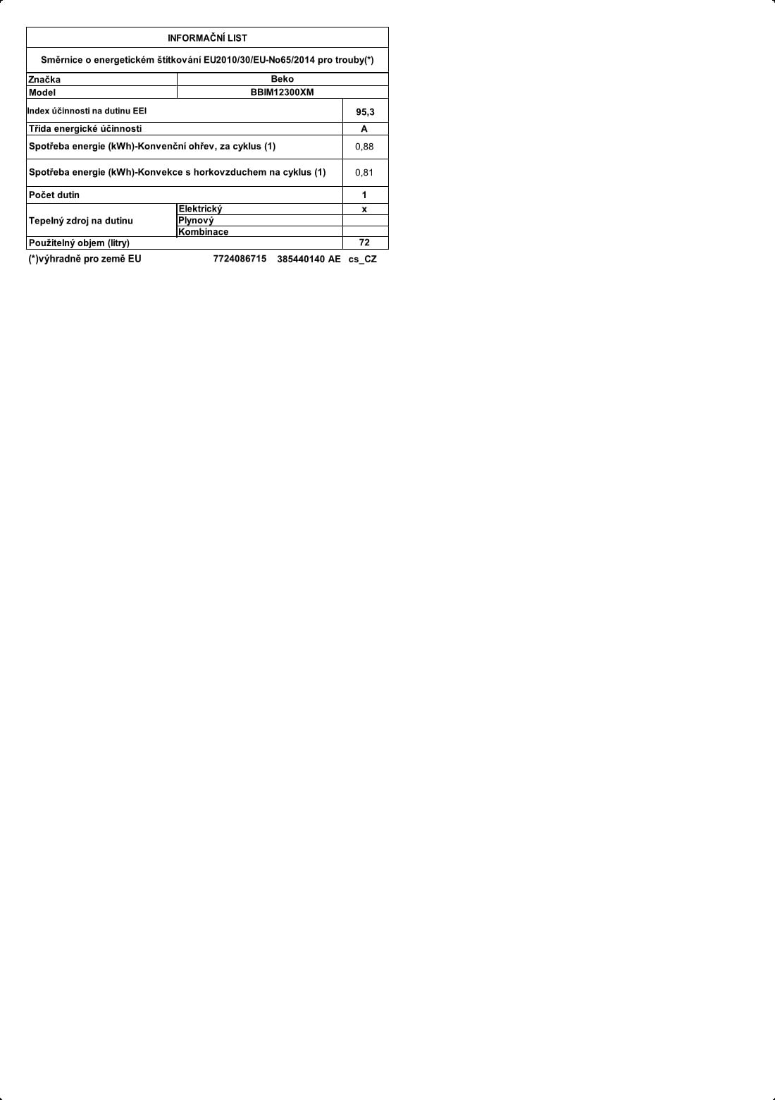 BBIM12300XM: Vestavná trouba (60 cm, 72 l)