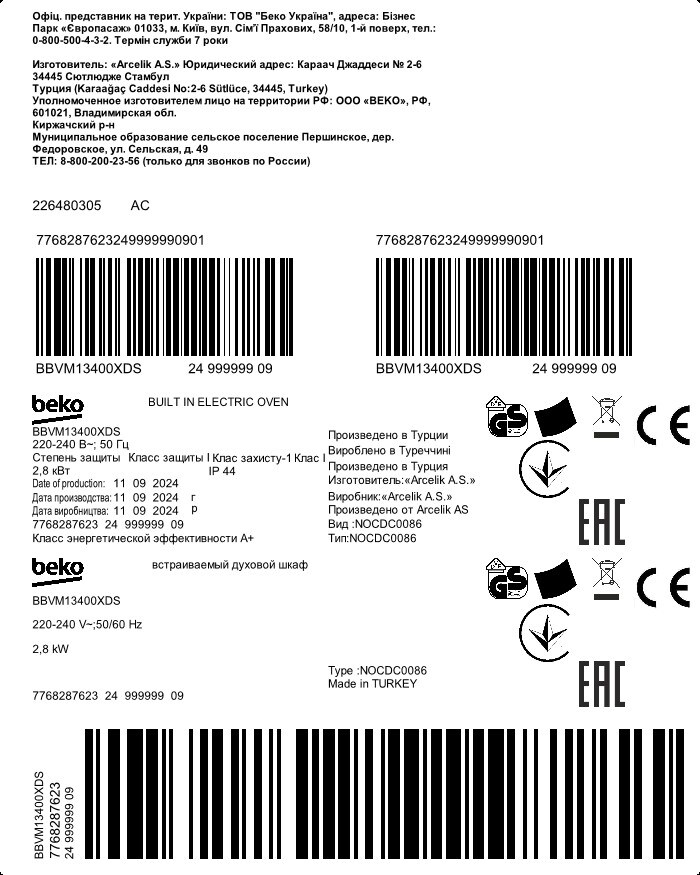 BBVM13400XDS: Vestavná trouba (60 cm, 72 l)
