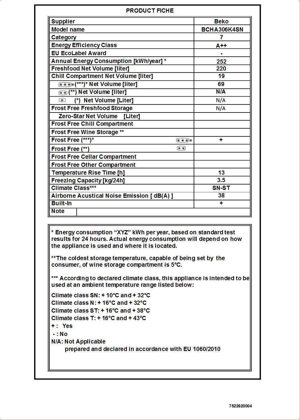 BCHA306K4SN: Vestavná lednice s mrazákem (s mrazákem dole, 54 cm)