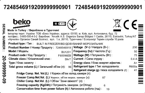 BU1201: Vestavná mraznička (Šuplíkový mrazák, 87 l)