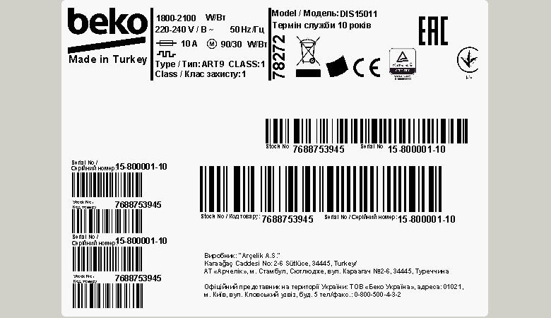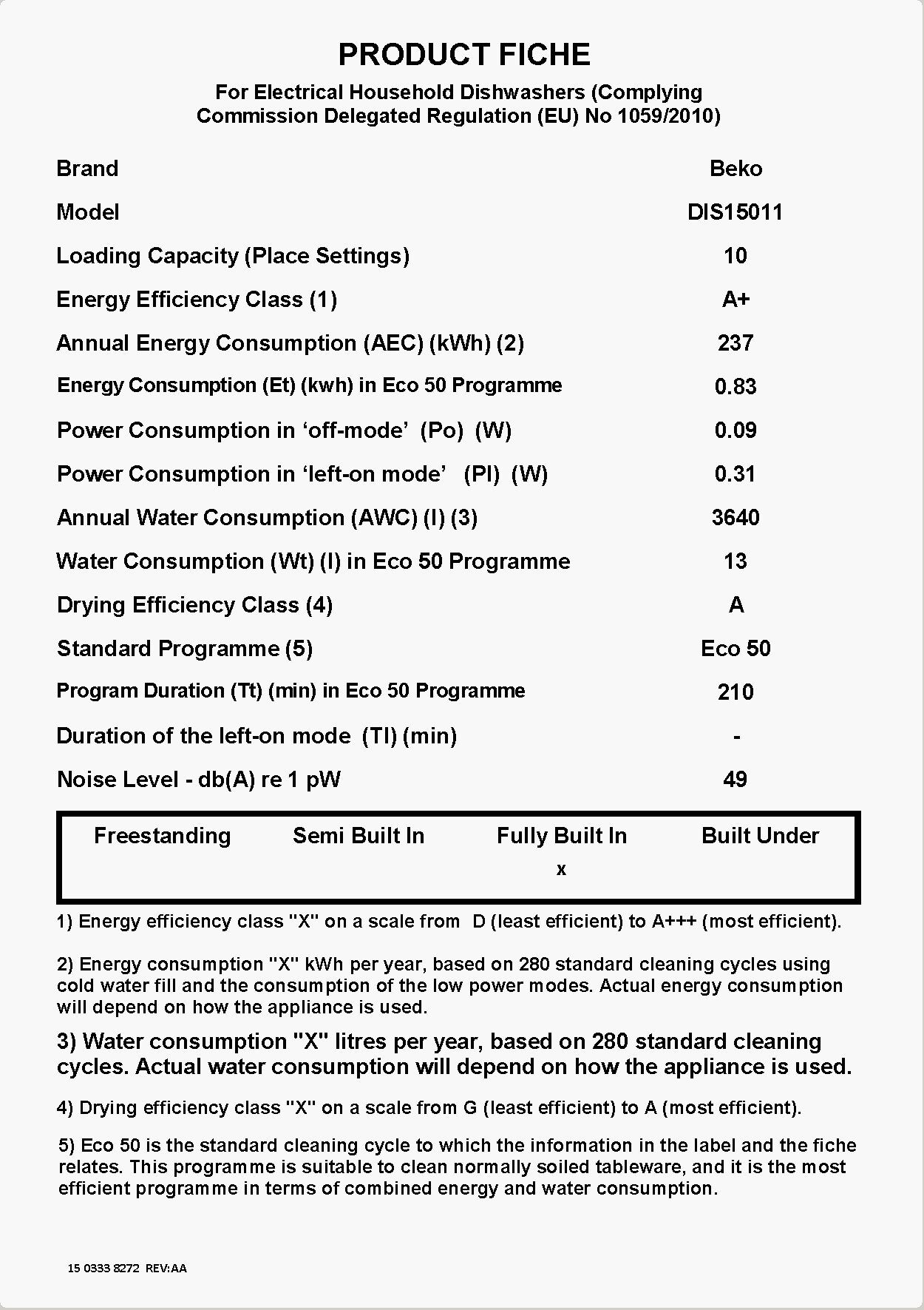 DIS15011: Plně integrovaná myčka (10 sad nádobí, 45 cm)