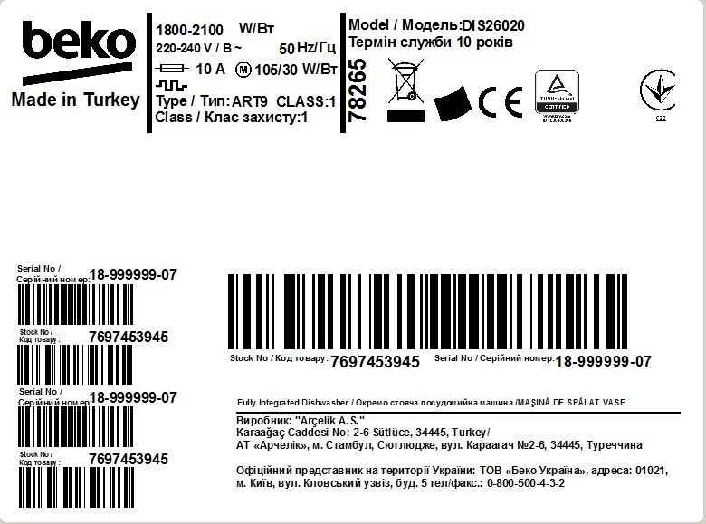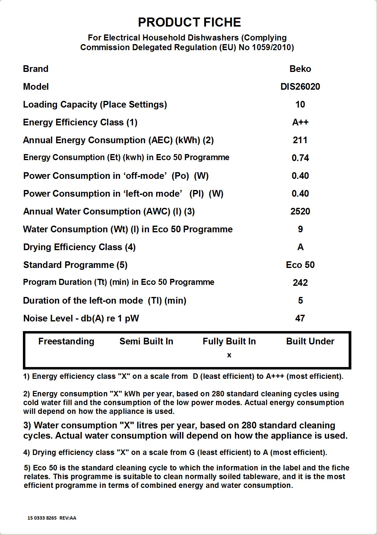 DIS26020: Plně integrovaná myčka (10 sad nádobí, 45 cm)