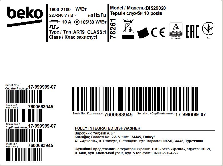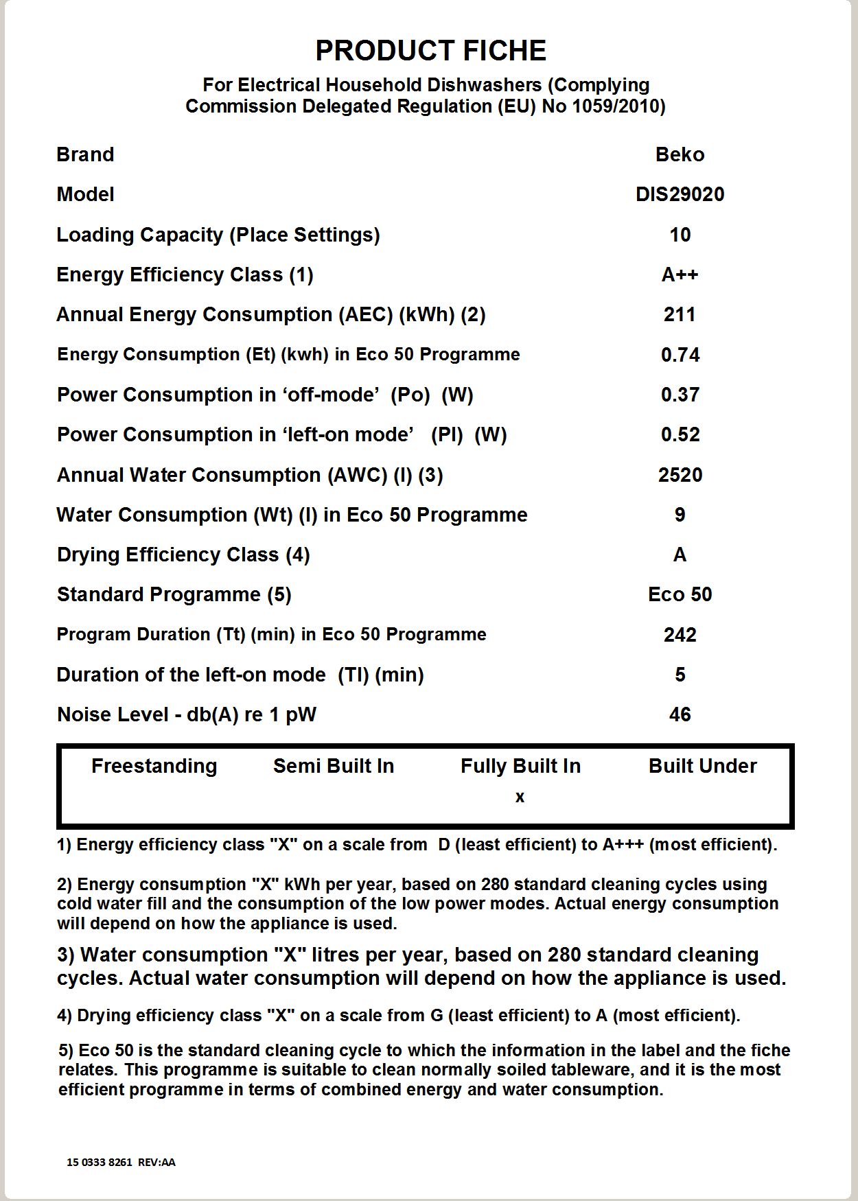 DIS29020: Plně integrovaná myčka (10 sad nádobí, 45 cm)
