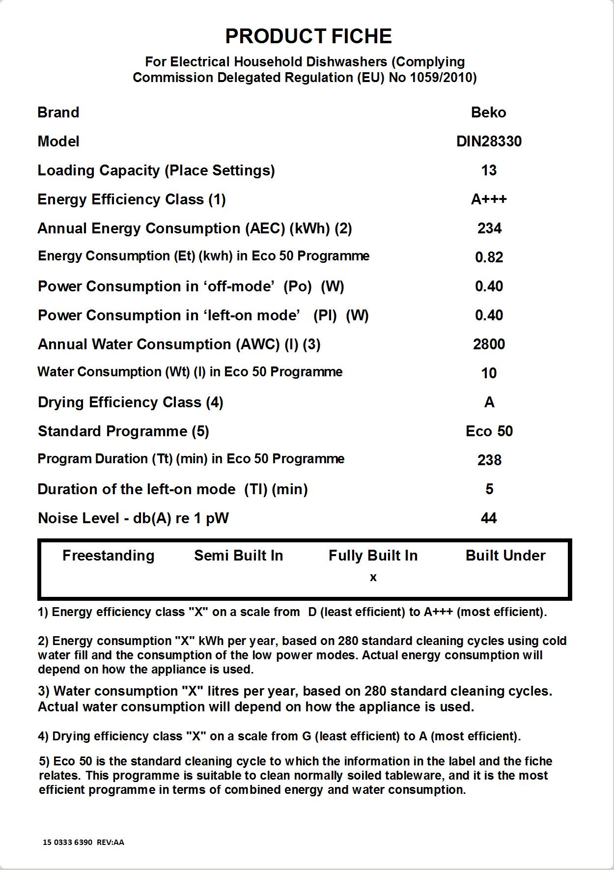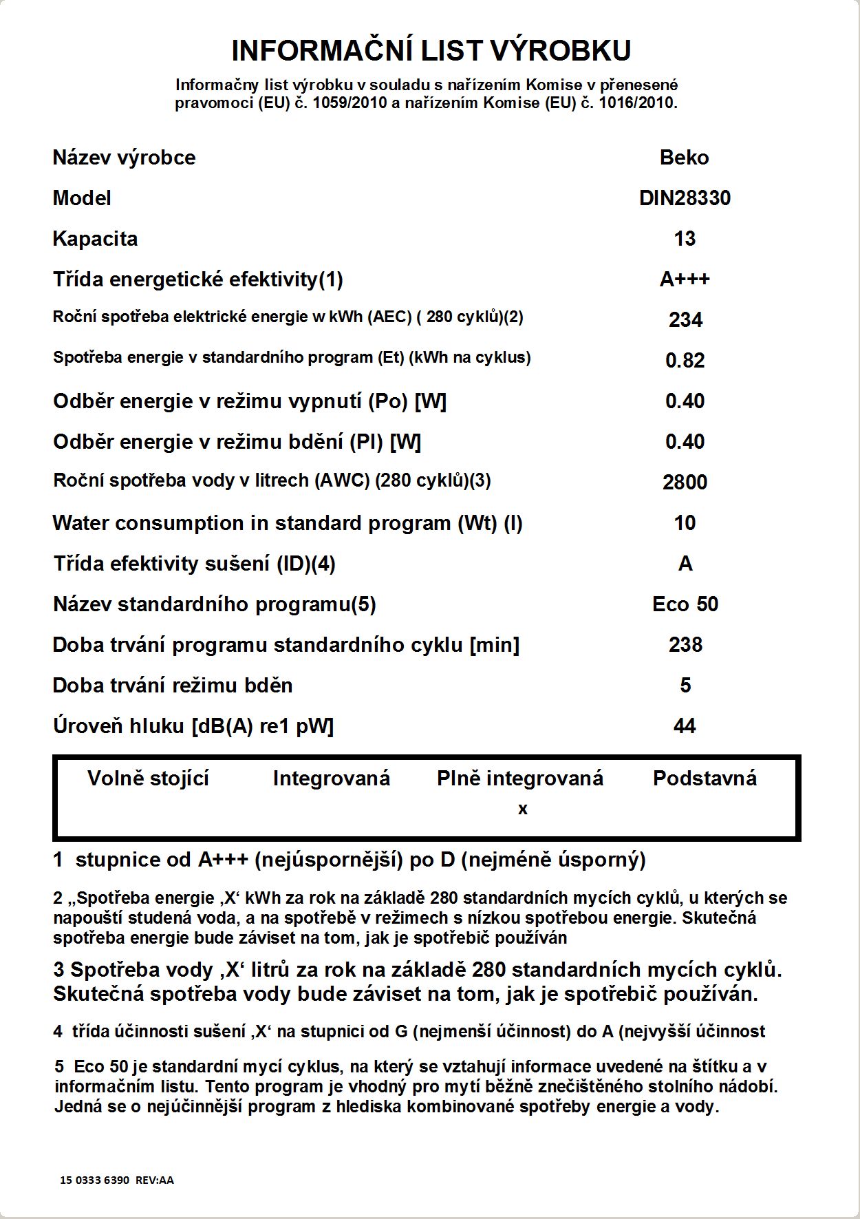 DIN28330: Plně integrovaná myčka (13 sad nádobí, 60 cm)