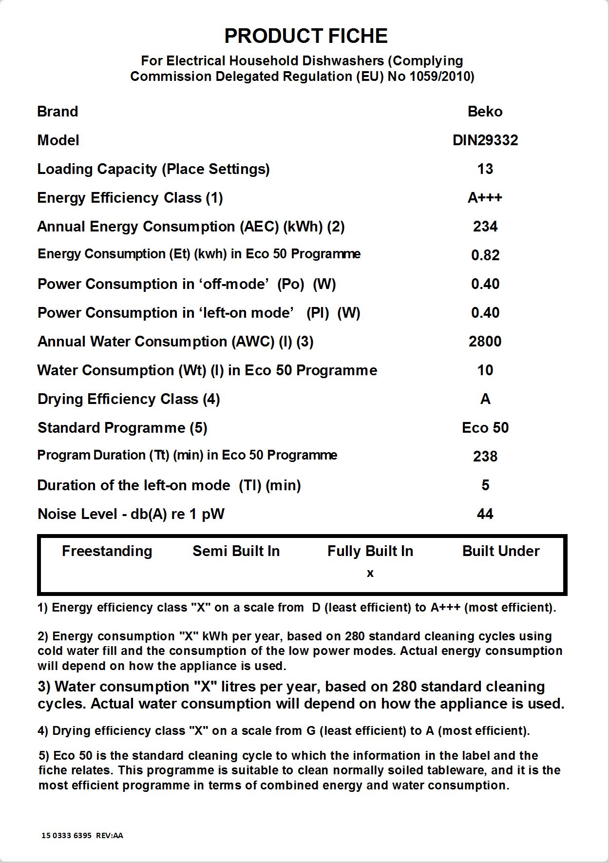 DIN29332: Plně integrovaná myčka (13 sad nádobí, 60 cm)