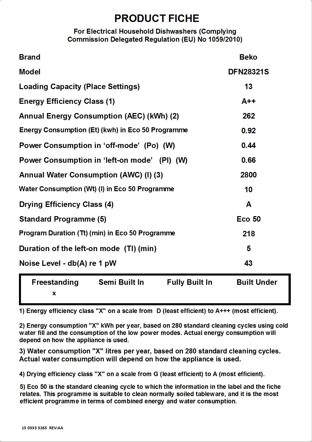 DFN28321S: Volně stojící myčka (13 sad nádobí, 60 cm)