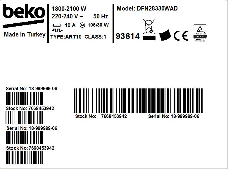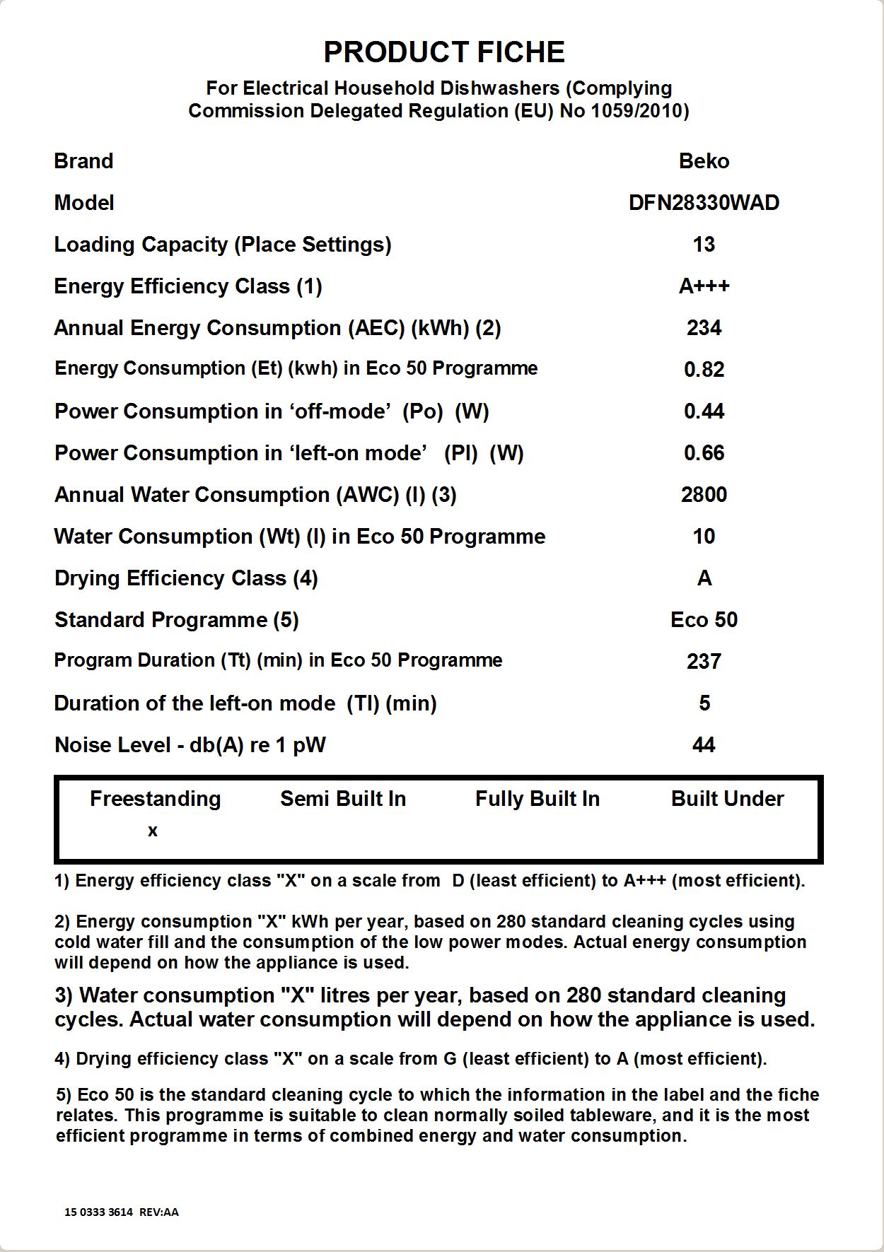 DFN28330WAD: Volně stojící myčka (13 sad nádobí, 60 cm)