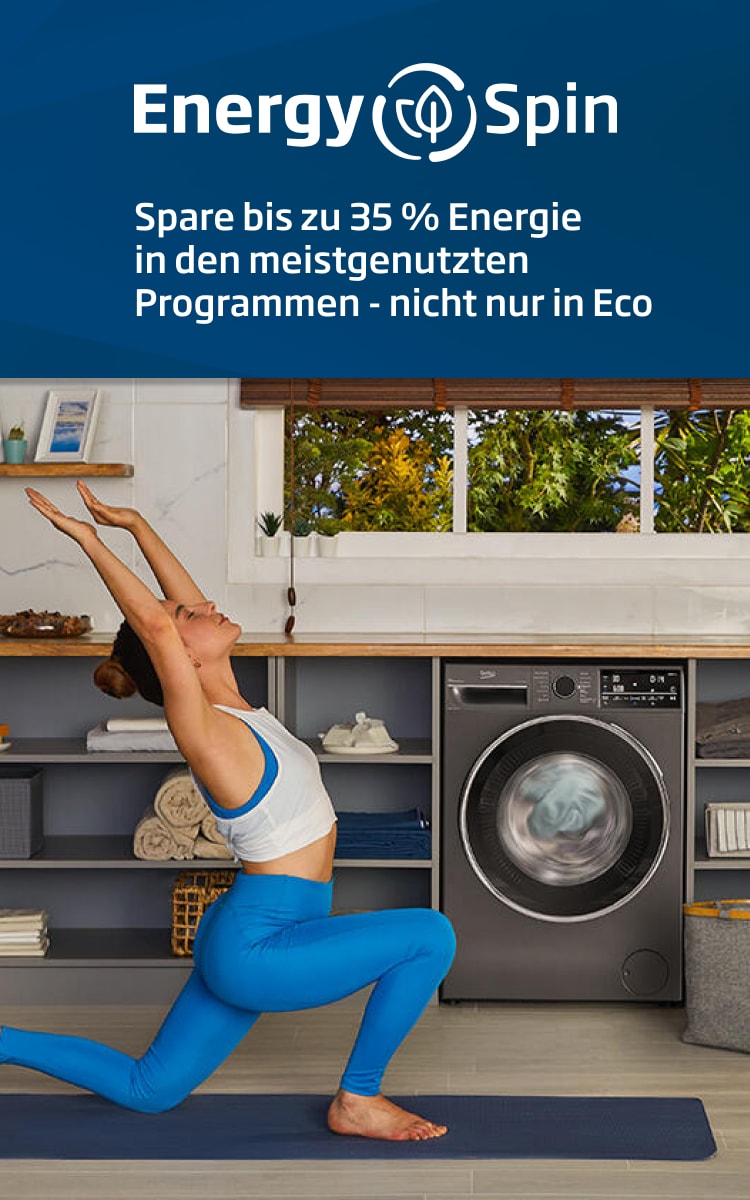 Erlebe die Revolution der Energienutzung mit EnergySpin. Dank innovativer Trommelbewegungen beschleunigt die neue Technologie von Beko die Auflösung des Waschmittels bei minimaler Wärmeentwicklung, was nicht nur eine sparsamere und nachhaltigere Anwendung, sondern auch beste Reinigungsergebnisse ermöglicht.