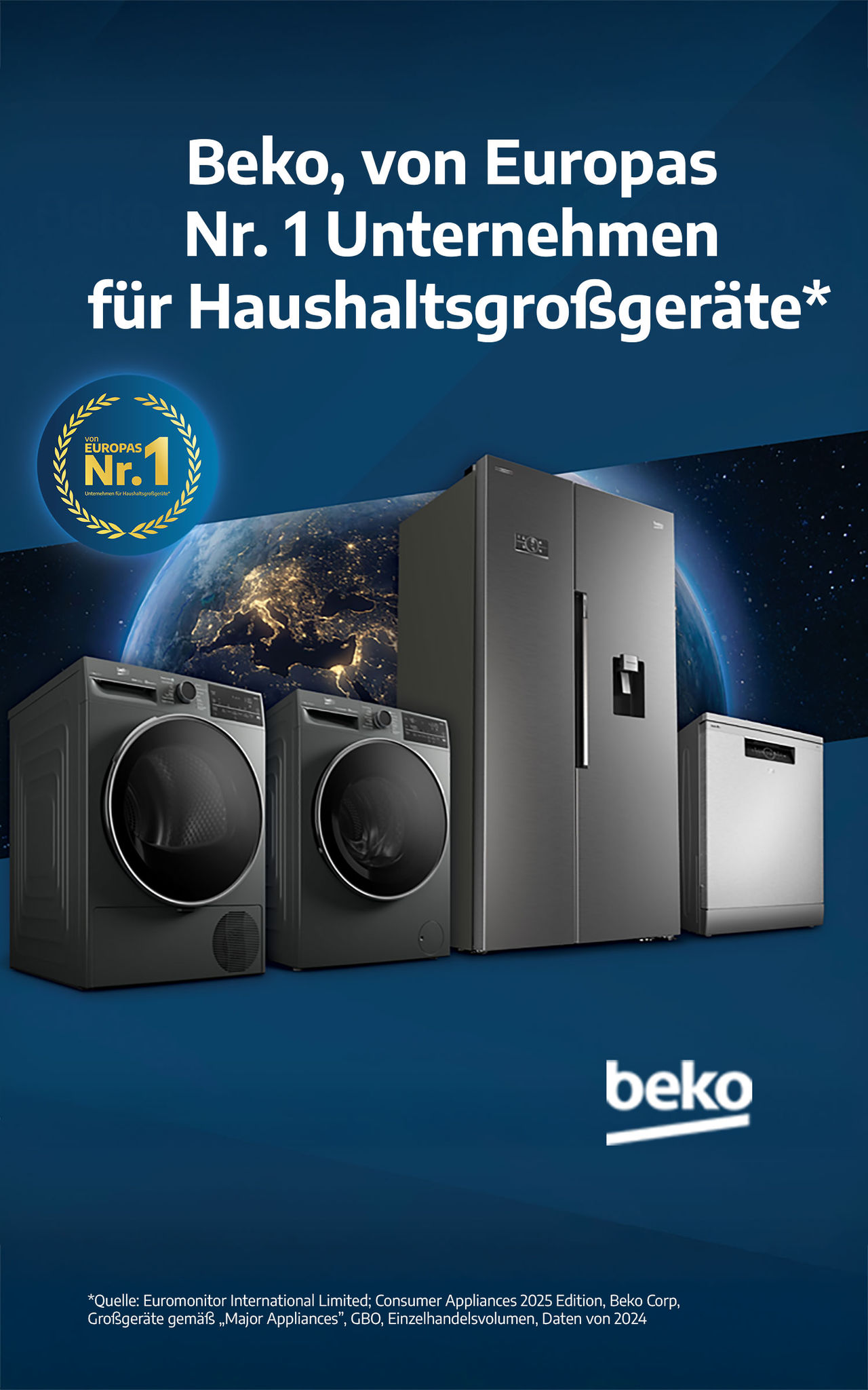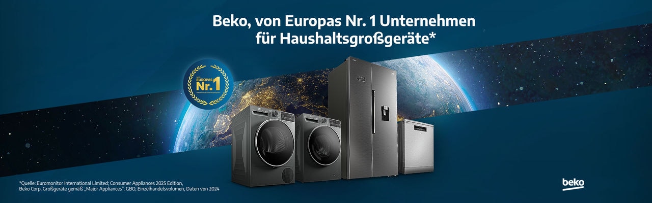 *Quelle: Euromonitor International Limited; Consumer Appliances 2025 Edition, Beko Corp, Großgeräte gemäß „Major Appliances”, GBO, Einzelhandelsvolumen, Daten von 2024.