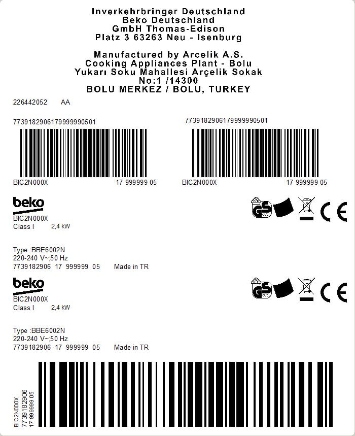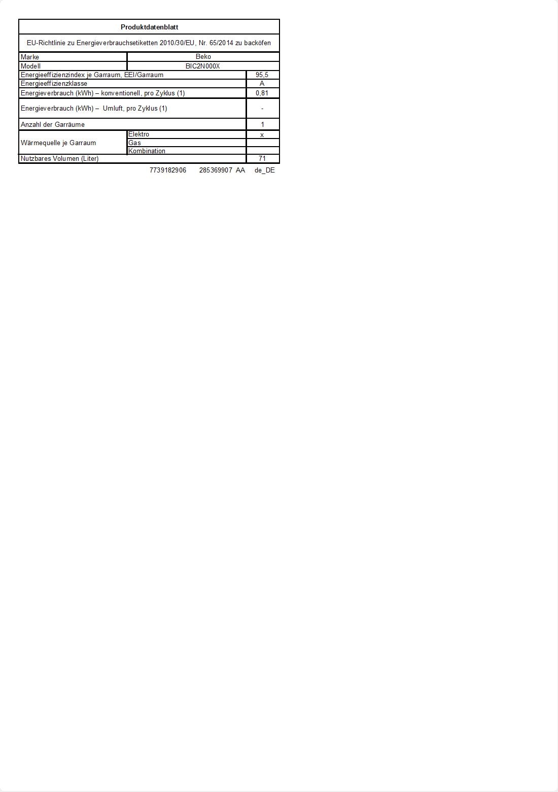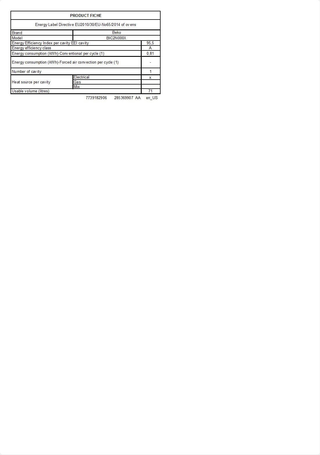 BIC2N000X: Einbau-Backofen (60 cm Backofen, 71 l)