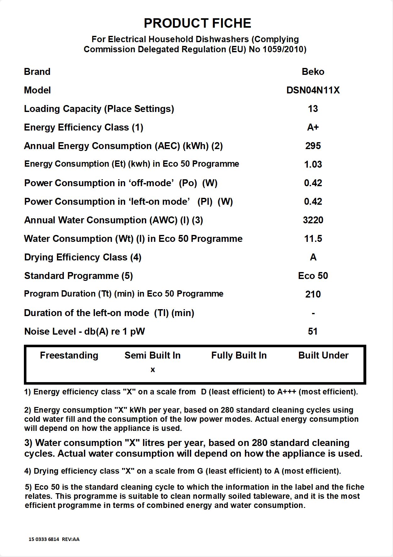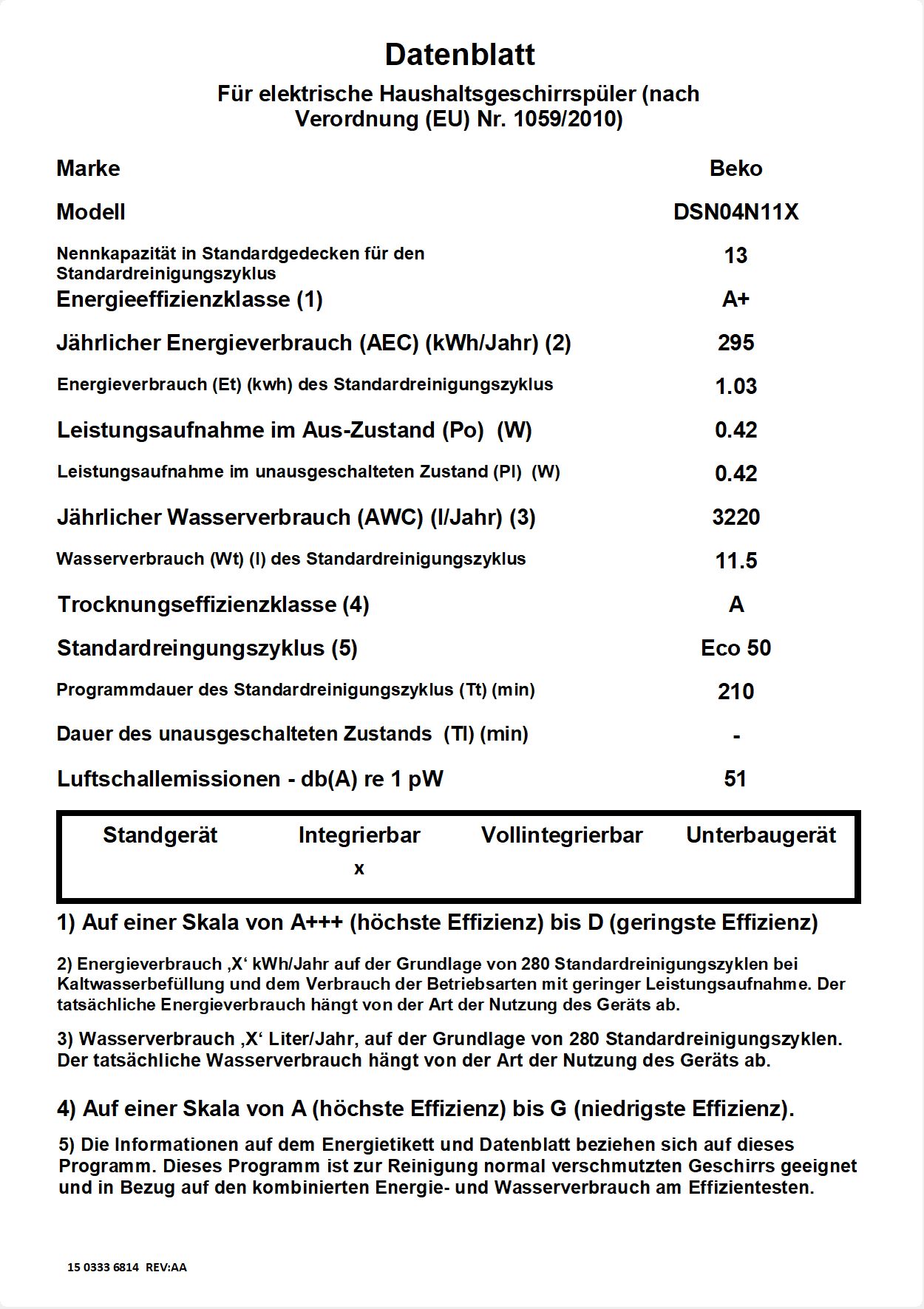 DSN04N11X: Einbau-Geschirrspüler (13 Maßgedecke, 60 cm)