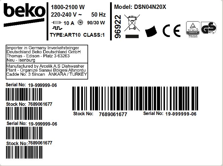 DSN04N20X: Einbau-Geschirrspüler (13 Maßgedecke, 60 cm)