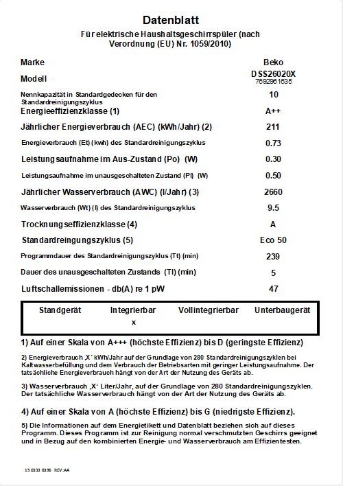 DSS26020X: Einbau-Geschirrspüler (10 Maßgedecke, 45 cm)