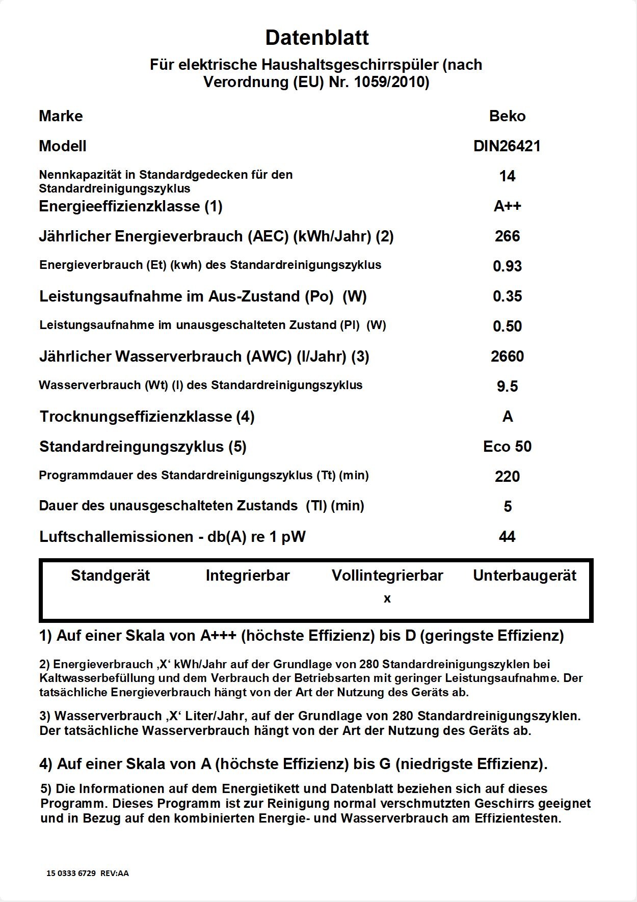 DIN26421: Einbau-Geschirrspüler (14 Maßgedecke, 60 cm)