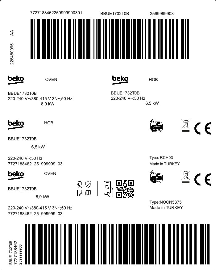 BBUE1732T0B: Einbau-Set (Umluft Ofen / Glaskeramik Kochfeld)