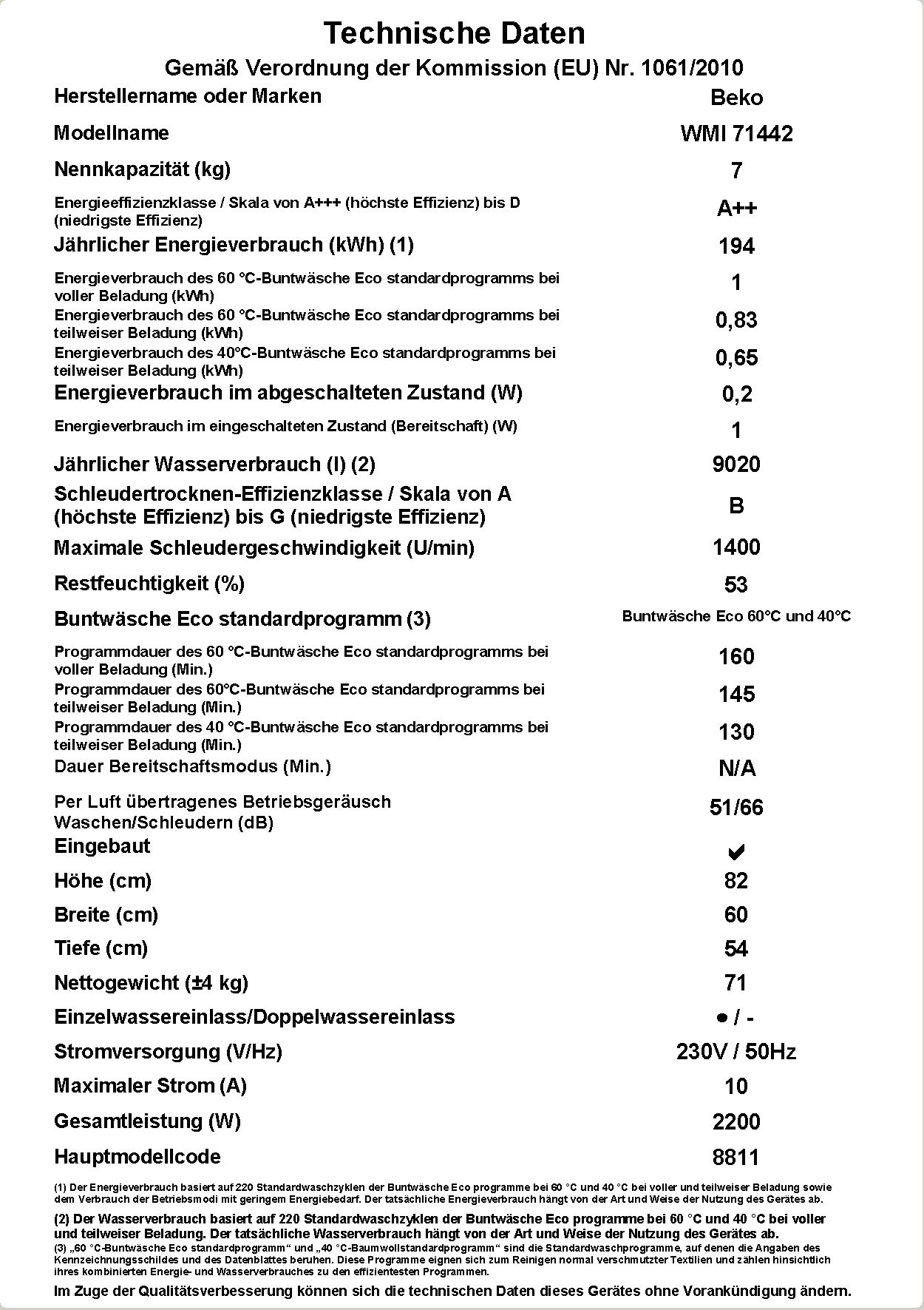 WMI 71442: Einbau-Waschmaschine (7 kg, 1400 U-Min)