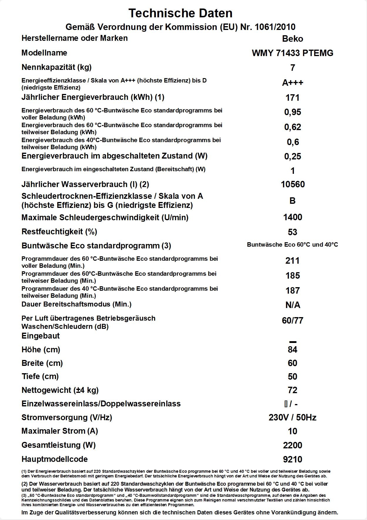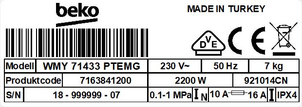 WMY 71433 PTEMG: Freistehende Waschmaschine (7 kg, 1400 U-Min)