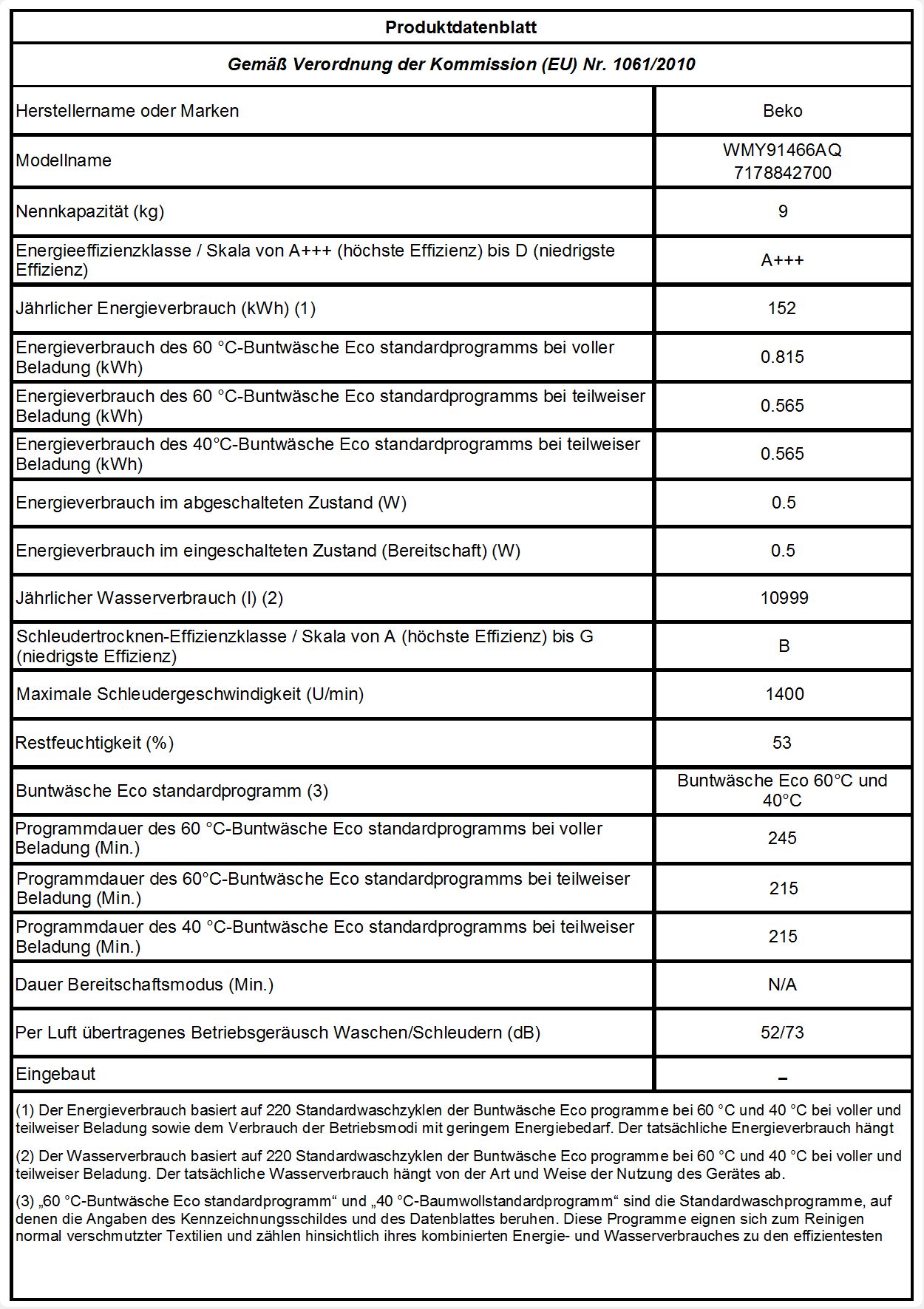 *auf einer Skala von A+++ (höchste Effizienz) bis D (geringste Effizienz)