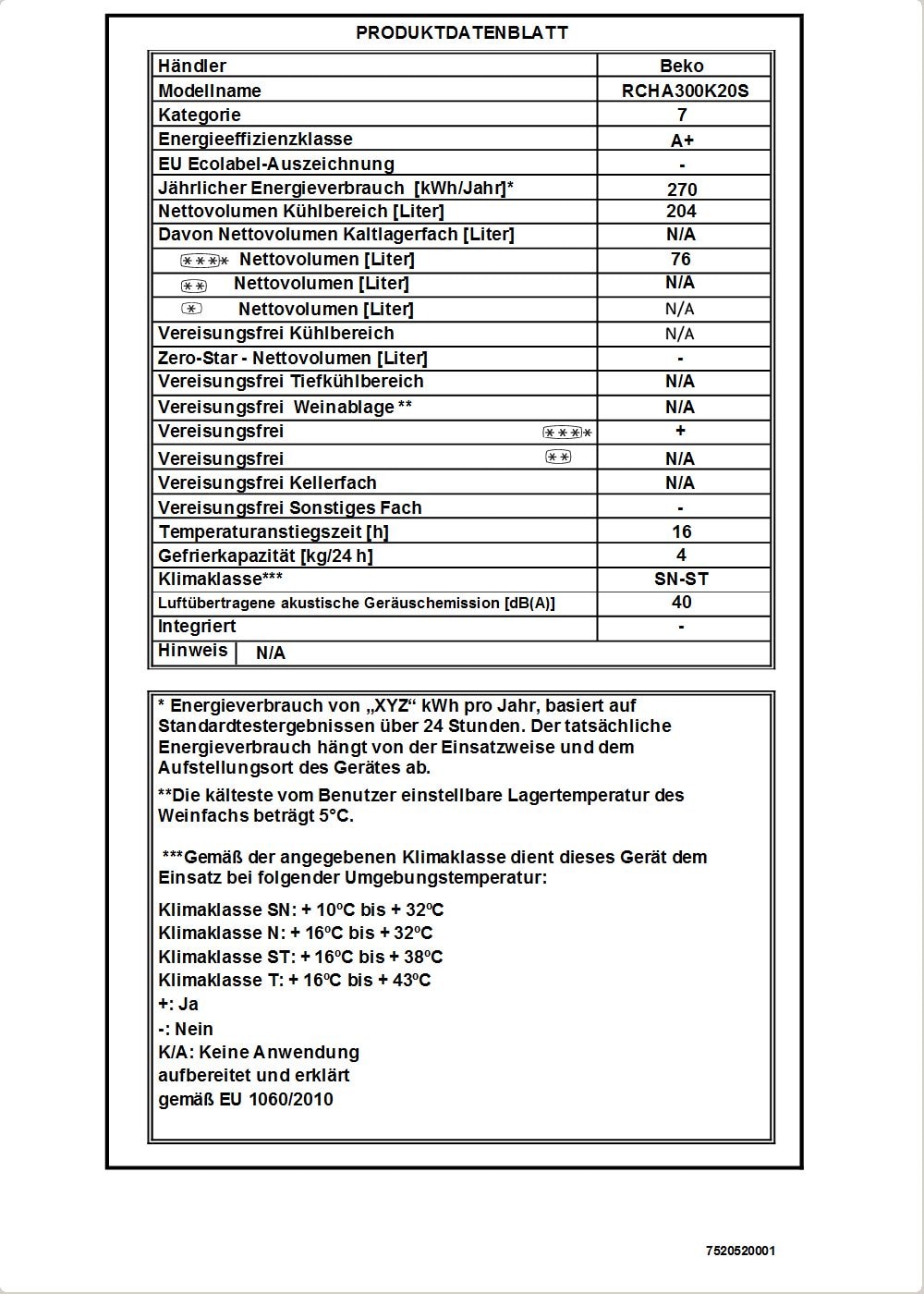 RCHA300K20S: Kühl-Gefrierkombination (Gefrierteil unten, 54 cm)