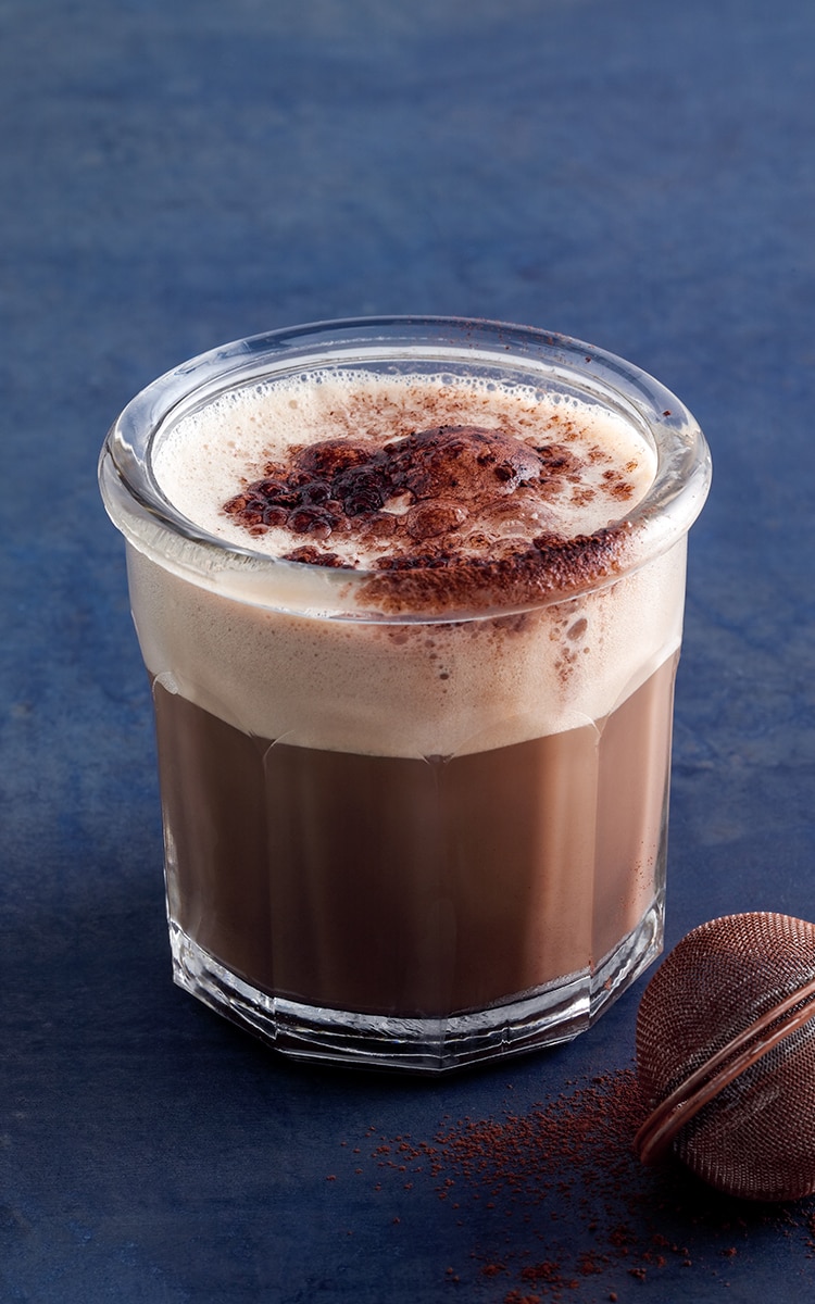3. Den Frappuccino in ein großes Glas geben, mit etwas Kakao bestreuen und genießen.