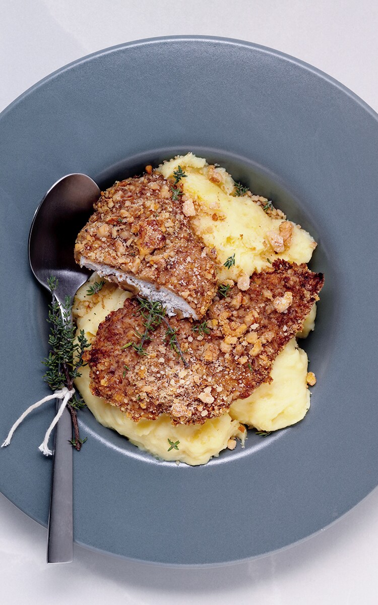 Dieses Rezept ist ideal für die ganze Familie und verwandelt jede Mahlzeit in ein gemütliches Zusammensein. Das Hähnchen erhält eine knusprige, nussige Kruste, die nicht nur gesund, sondern auch besonders lecker ist. Dazu gibt es ein leichtes, fluffiges Kartoffelpüree, das perfekt zum Hähnchen passt. Das Gemüse wird perfekt geröstet und bringt eine angenehme Süße ins Spiel. Ein Gericht, das alle zusammenbringt und für einen rundum gelungenen Abend sorgt.