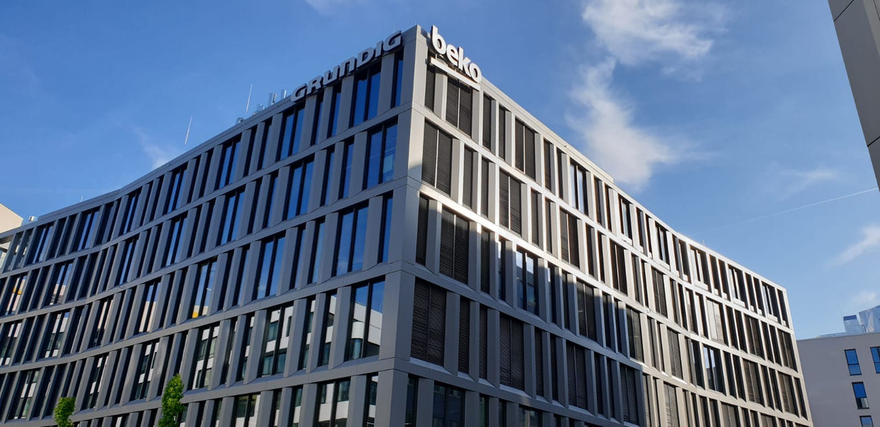 Auch am neuen Standort in Eschborn, der im Frühjahr 2022 bezogen wurde, setzt die Beko Grundig Deutschland GmbH auf Nachhaltigkeit. So entspricht das Gebäude des neuen Nordeuropa-Headquarters mit DGNB-Gold-Zertifizierung höchsten Nachhaltigkeitsanforderungen und einem zukunftsweisenden New-Work-Konzept. Ab dem zweiten Quartal 2023 wird am Standort darüber hinaus der neue Showroom eröffnet, in dem Geschäftspartner:innen gemeinsam mit dem Vertriebsteam alle Highlight-Produkte von Beko und Grundig live vor Ort erleben können.